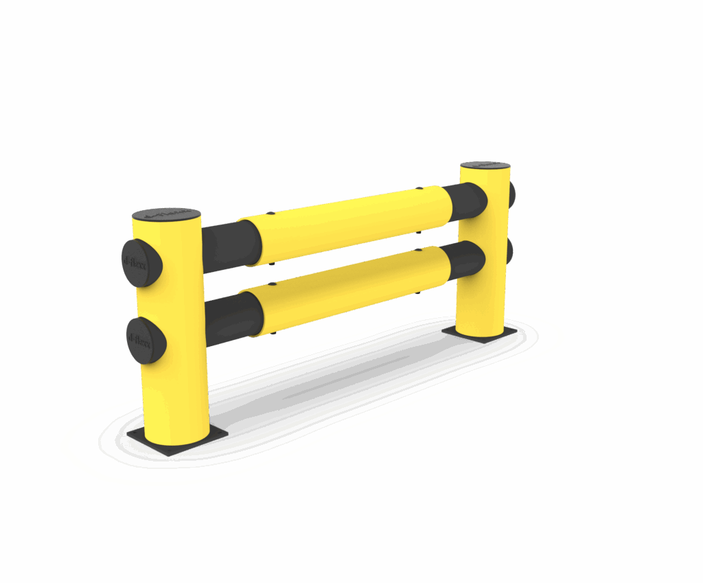 For doorway areas exposed to forklift or industrial vehicle traffic, a high‑impact flexible barrier — typically in a bollard format — is the most suitable option. These barriers are tested to withstand impacts up to 6,500 J, making them ideal for protecting busy entry points such as doorways and loading zones.