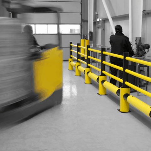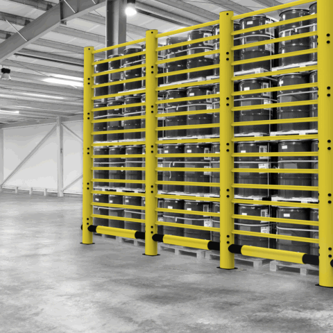 PAS 13-tested polymer barrier systems designed to separate forklifts and pedestrians, protect critical assets, and absorb impact energy to help reduce operational downtime.
