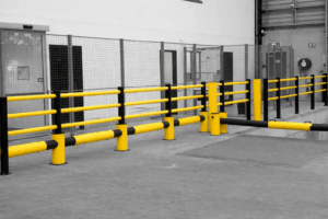 Bollards are typically used for point protection such as columns, rack ends, and doorways. Guardrails and traffic barriers are used for vehicle segregation and protecting longer asset runs. Multi-rail systems are recommended for high traffic forklift and pedestrian interaction zones. We design layouts based on risk zones rather than product type alone.